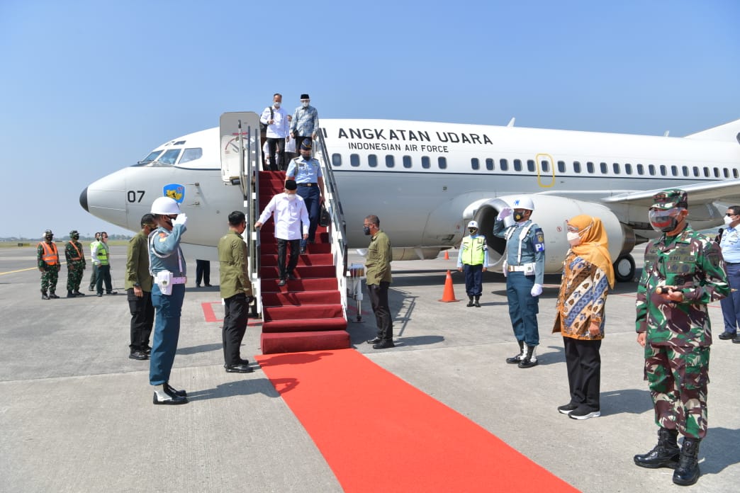 Gubernur Jatim, Pangdam V/Brawijaya, Pangkoarmada II, Kapolda Jatim, dan Kabinda Jatim, mendampingi Wakil Presiden RI K.H. Ma’ruf Amin, bersama para mentri diantaranya Menteri Perindustrian Agus Gumiwang, dan Menteri Koperasi UKM Teten Masduki, melakukan kunjungan kerja di Jawa Timur, dalam rangka memperbaiki dan meningkatkan perokonomian di wilayah Jawa Timur selama masa pandemi covid-19.