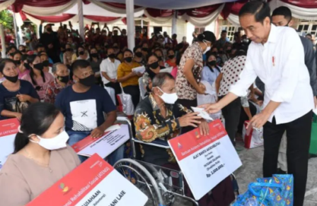 Dalam kunjungan kerja perdananya Rabu (6/7) Presiden langsung menyerahkan bantuan langsung ke pedagang di Pasar Alasa, Kabupaten Nias Utara.