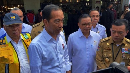 Medanewstv.com – Presiden RI Joko Widodo bersama Menteri PUPR Basuki Hadimulyono, Seskab Pramono Anung dan Gubernur Jambi Al Haris Selasa pagi (16/5) meninjau pasar tradisional Rakyat Talang Banjar, di Jambi.