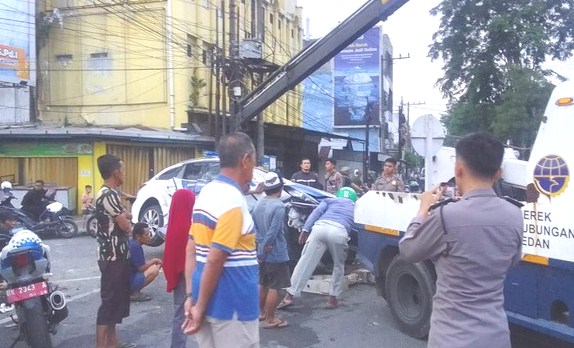 Menurut Kasat Lantas Polrestabes Medan Kompol Andika Temanta Purba kejadiannya di persimpangan Jalan Juanda-Jalan Brigjend Katamso, tadi pagi jam 5-an (pagi)